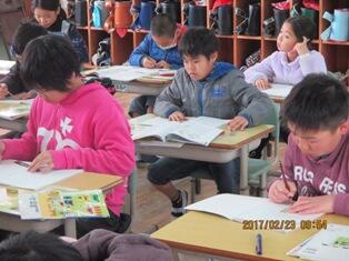 ・ 2時間目、算数の授業です。今日、明日は担任は研修(出張)のため、日頃から算数を担任と二人で指導している教頭先生が一人で指導していました。みんな集中して取り組んでいるようでした。