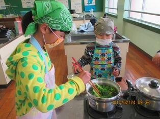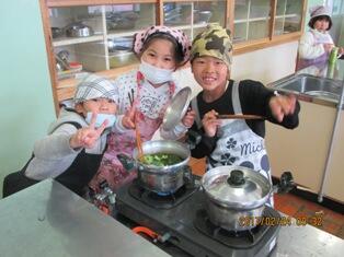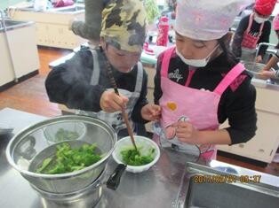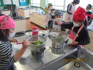 ・ 2年生が自分たちが畑で育てたブロッコリーを収穫し、ゆでていました。それぞれが本当に楽しそうに畑での作業、家庭科室でのゆでる活動を行っていました。家庭科室には、ブロッコリーの青く新鮮なにおいが充満していましたが、子供たちは、「いいにおい」と言いながら、活動をしていました。