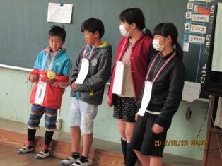 ・ 今日の昼の放送では、数名が生出演し「一番楽しかったこと」などを話しました。楽しかったこと、の中には「桜っ子発表会」もありました。また、自分でがんばっていることの中には、今、昼休みの遊びで一番多い「サッカー」のことを話した子供もいました。交代でマイクの前に行き、話をしていました。一番下は、今日のゲストです。