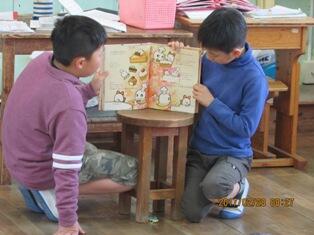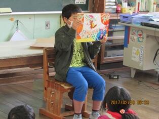 ・ 今日の読み聞かせは、6年児童が1年児童へ、5年児童が2年児童へ、4年児童が3年児童へ読み聞かせをしてもらいました。読書や読み聞かせの時には、いつも静かですが今日も聞く方は静かでした。読む方は、先生たちも数名がいる中、静かな中で下級生に読むと言うことだったので、緊張をした子供もいたかもしれません。