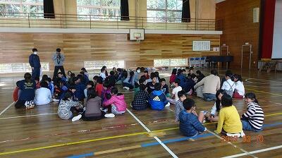 油津小学校の4年生(55名)との交流会が、桜ケ丘小体育館で行われました。