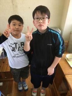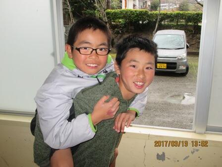 ・ 1学年1学級の本校では、異学年同士の交流は日頃から普通に多いです。今日の午後にも、写真のように5年児童が4年児童をおんぶする姿を見かけました。和やか。
