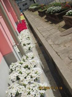 ・ いつもの違いしーんとしていた校舎でしたが、児童の声が・・・・行ってみると二名の児童が花壇の花に水をあげてくれていました。やさしいですね。