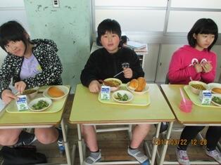 ・ 小学校での最後の給食でした。6年生の様子はあまり普段とは変わりませんでした。