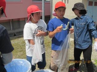 分ほどまわった結果、かなりの量のゴミが集まりました。拾ったゴミは分別をしました。各教室では4月から「燃えるゴミ」「プラごみ」を分けています。今日のような取組+日常の取組が環境を大切にする心や地域を愛する心情の育成につながるようにしていかなければなりません。