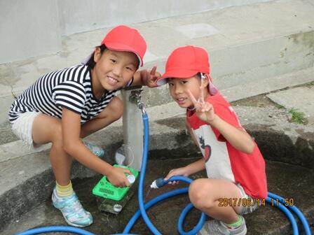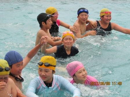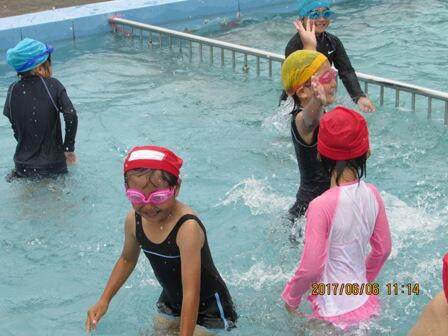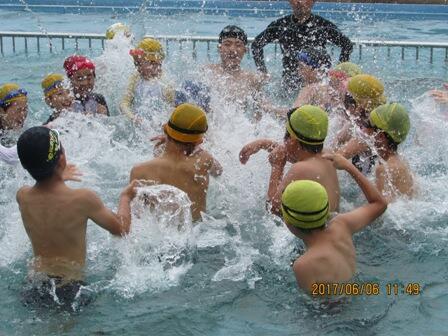・ 今日はプール開きをしました。天気は曇りで、はじめはやや寒いような気もしたのですが、子どもたちの多くが、今年初めての水泳(水遊び)の授業を楽しんでいました。