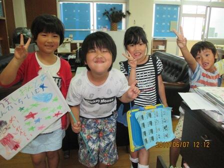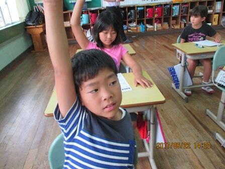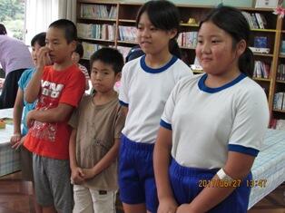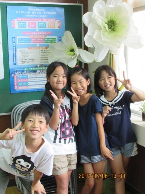 ・ 7/2の市文化フェスティバルに出場する児童は俳句の言い方と「花は咲く」の歌の練習をしました。歌は、今年度の市文化フェスティバルのメインゲストである愛知県の歌の天才少女と一緒に歌わなければなりません。でも、本校の4名もなかなか上手でした。良い声が出ていました。写真は、練習終了後に写したものですので、男児が入っていません。また今度載せます。