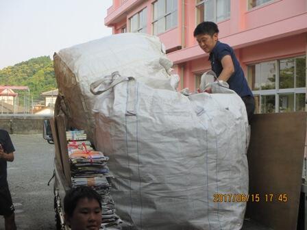 ・ 昨日は17:30から事業部の方が、リサイクル品の回収に来て下さいました。今回も写真のようにトラックいっぱいの品を積んでくださいました。月1回ほど、このように来て下さいます。ご苦労様です。ありがとうございます。昨日は、4年生の頼もしい助っ人も二人、保護者の方と共に来てくれました。そして、一生懸命に手伝ってくれました。ありがとう。