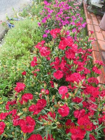卒業式、入学式に飾った「ペチュニア」、まだ咲いています。プランターの「なでしこ」は今、二回目の花を咲かせてくれています。節約のために、夏休みまでは保たせたいと思っています。