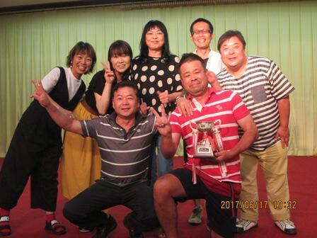 ・ 3日にまなびピアにて開催されました。本校からは3チームが出場、他の二校の方々と交流をしながら優勝をめざしました。結果は、各予選リーグで全勝、一勝一敗、二敗でした。そのうち予選一位のCチームが全体の準優勝でした。参加していただいた皆様、ご苦労様でした。ありがとうございました。写真は、全員での集合写真と優勝のCチームの皆さん