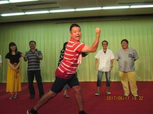 18:00からはJA会館で恒例の懇親会、学校ごとのテーブルでしばらく楽しんだ後に、ステージにて学校紹介がありました。写真はその一部です。盛り上がりました。出場された選手(役員)の皆さん、ご苦労様でした。