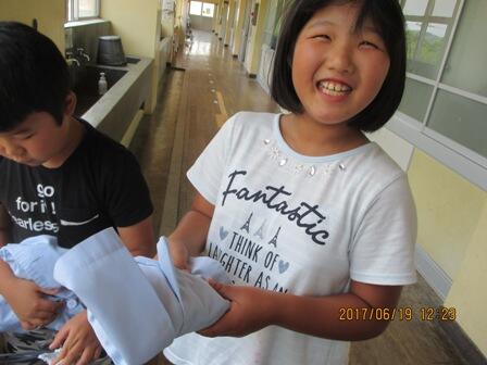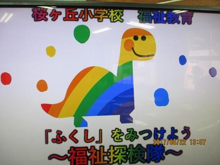 ・ 今、3年生が福祉の学習をしています。講師として社会福祉協議会から来ていただき、手作りの画面も使用してもらいながら指導してもらっています。講師に来て下さっている方は、本校卒業生で校区内に住んでいらっしゃる、子どもたちにとっては先輩です。以前テレビで「ようこそ先輩」という番組がありましたが、まさにそれですね。