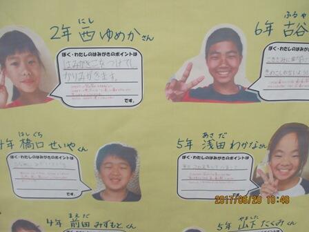・ 写真の児童は、「虫歯」「虫歯の疑いのある歯」がない児童です。全校で18名です。保健室の廊下壁面に掲示しています。