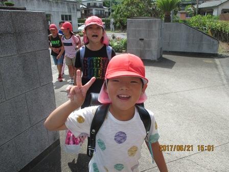 ・ 今日は途中まで教師引率の地区別集団下校でした。子どもたちは、様々な顔をして今、学校を出たところです。