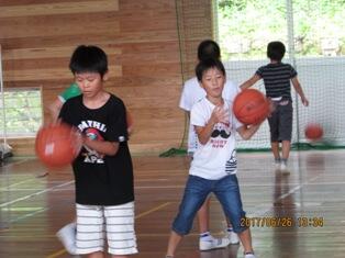 ・・ 雨の時には、体育館を学年順番で開放します。今日は5年生の順番でした。バスケット、ミニバレー、バレーなど、全員がボール遊びをしていました。