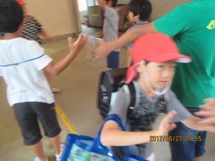 ・ 今日のような雨の時には、児童靴箱のの前で行ってくれます。今日の様子です。ハイタッチも楽しそうです。挨拶運動をしてくれている子どもに感想を聞きました。「あいさつを返してくれると楽しい。」「あいさつをすることは大切だと思う。」だそうです。家でも、休みの日でもあいさつができるようにしていきましょう。あいさつは、人と人とのつながりの第一歩です。