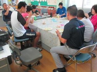 ・ 今日の昼食は、職員が隙間の時間をぬって作ってくれたカレーをみんなでいただきました。カレー粉は数種類が混ぜてあるようです。割と大盛りを2杯も食べた職員もいました。
