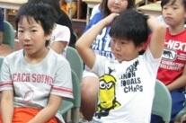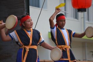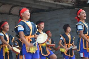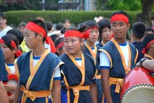 ・ 29日に行われた油津小夏祭りに5,6年児童19名がエイサーでデビューしました。(休日のため、自由参加)油津小では恒例となっている夏祭りの特設ステージで、観客の皆さんの拍手に支えられながら、堂々と踊りを披露することが出来ました。はじめは多少の緊張感をもっていたような子どもたちでしたが、終わったあとは充実感を漂わせていました。また一つ、子どもたちにとっては良き思い出が、そしてよき成長のきっかけとなり得るイベントが終了しました。