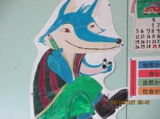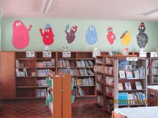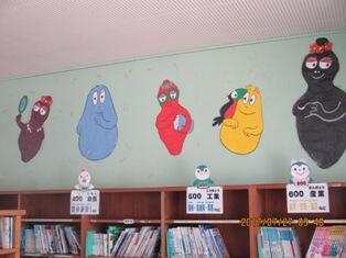 ・ またまたまたまた、出張以外の職員でアート作品を作成、あたたかみのある図書室にしました。これ、なんだか分かりますか?特に絵本の世界では有名なキャラクターです。