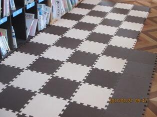 二つの図書室共に、少しのスペースですがマットもおきました。ナ・コで買ってきました。