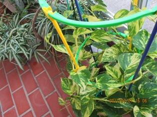 この赤い花はサンタンカ、ポトスも元気いっぱいです。