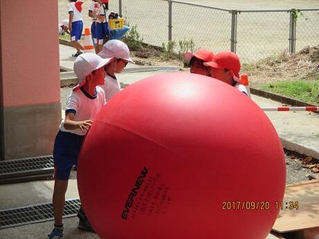 ・ 低学年が赤白大玉を片付けるのに苦労していました。なかなか思うように動きません。