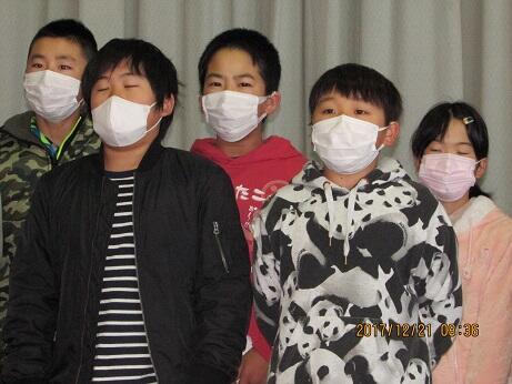 ・今日は、今回初めて2月に行う学習発表会の全体練習をしました。これから、各学級、及び全体での練習を繰り返しながら発表会当日を迎えます。インフルエンザなどの感染症は本校でまだその流行はありませんが、市内の他の学校ではかなり流行しており、休業などの措置も以前からどこかの学校で行われています。本校では、今月初旬から「マスク着用」としていますので、今日の全体練習もマスクマンです。
