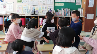 「雪」のプレゼントをしてくださった鳥取県の小学校と、1・2年生がオンラインで繋がりました。