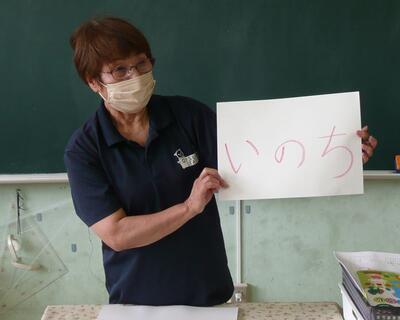 給食時間の放送で、生徒指導主事の上久保先生が「『火・水・人・車』に注意して命を守る行動を最優先してほしい。そして、コロナウイルスの感染対策もしっかりしてほしい。」という話をしました。