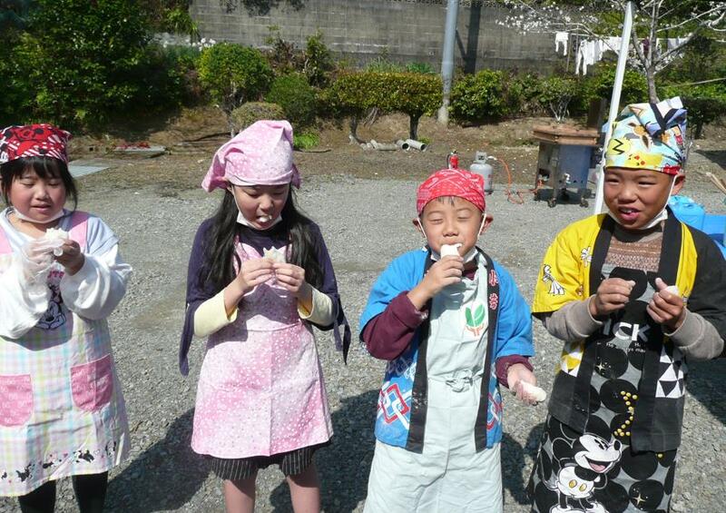 参加した子どもたち全員が、杵で餅をつき、ついた餅を丸めておいしくいただきました。