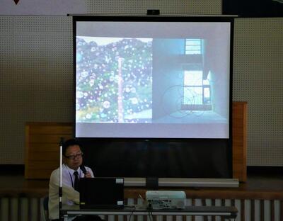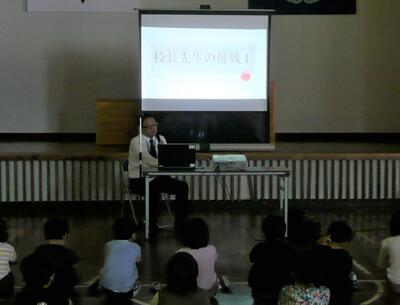 校長先生が、「校長先生の挑戦」というテーマで話をしました。
