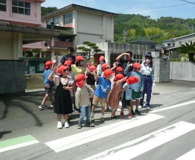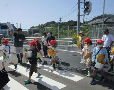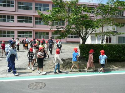 昨年までは、学校の運動場で実施していましたが、本年度からは、児童がより安全に登下校をしてもらえるように