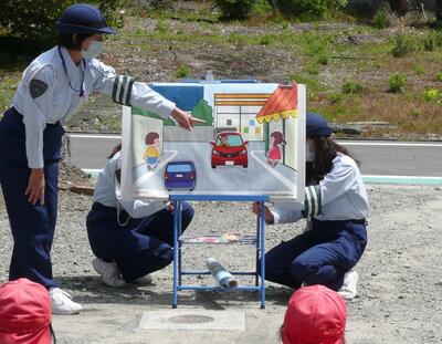 はじめに、日南警察署及び交通安全協会の方に、話をしていただきました。
