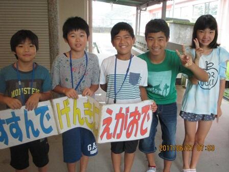 ・ 今日のような雨の時には、児童靴箱のの前で行ってくれます。今日の様子です。ハイタッチも楽しそうです。挨拶運動をしてくれている子どもに感想を聞きました。「あいさつを返してくれると楽しい。」「あいさつをすることは大切だと思う。」だそうです。家でも、休みの日でもあいさつができるようにしていきましょう。あいさつは、人と人とのつながりの第一歩です。