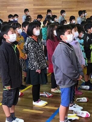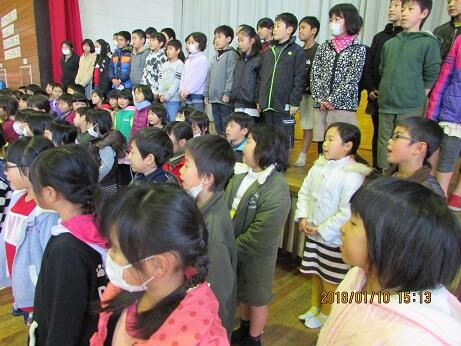 ・1年女子児童1名の転入生を迎え、3学期がスタートしました。冬休み中も、特に事故や問題行動、けがや大きな病気をしたというような連絡も入らず、新しい年が迎えられたことをうれしく思います。短い学期ですが、一日一日、子供たちの良さを見いだし伸ばせる教育ができるよう努力していきたいと思っています。どうぞよろしくお願いします。