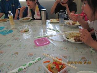 ・ 今日の昼食は、職員が隙間の時間をぬって作ってくれたカレーをみんなでいただきました。カレー粉は数種類が混ぜてあるようです。割と大盛りを2杯も食べた職員もいました。