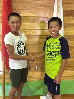 結団式も終わり、二人の団長が互いの健闘を誓い合い握手