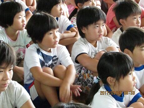 ・ 夏休み中も、児童が事故に遭ったり事件に巻き込まれたり、大きなけがをしたりすることもなく全員が元気に今日の日を迎えられたことを大変うれしく思っています。これからも、まずは「自分の命は自分で守る」ことに心がけ、ルールやきまりを守ったり、自分のすべきことはしっかりとやることなどに努めてほしいと思います。