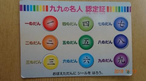 この時期になると2年生教室からかけ算九九を唱える声が聞こえてきます。どの子も、すべてクリアーしようと一生懸命です。今日クラスで初めて全て合格できたお友達がいます。まだ合格出来ていない人もこれから頑張っていきます。