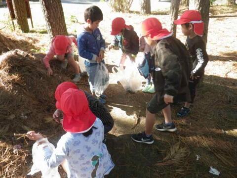 1年生はクリスマスリースを作るときに使う松ぼっくりを拾いに行きました。天気にも恵まれ楽しい活動でした。