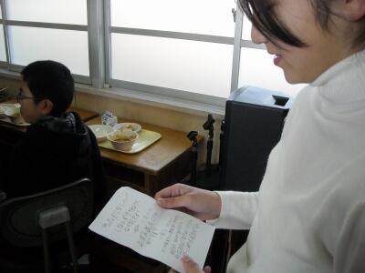 今日の給食の時間に各学年の代表者が校内放送を使って、なわとび大会までに上達した技等の紹介をしました。一人ひとりしっかりと発表することができました。