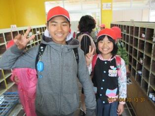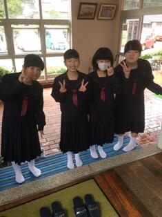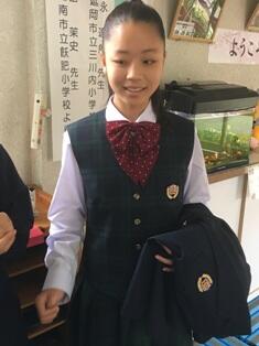 ・ 今日もありがたい訪問者がありました。進学した中学校の入学式を終えた卒業生です。一人で通学用鞄を持って来てくれました。校内を案内?したところ、下学年児童等がよってきて、その珍しい鞄や制服をさわったり話を聞いたりしていました。中学校でのますますの活躍を期待しています。