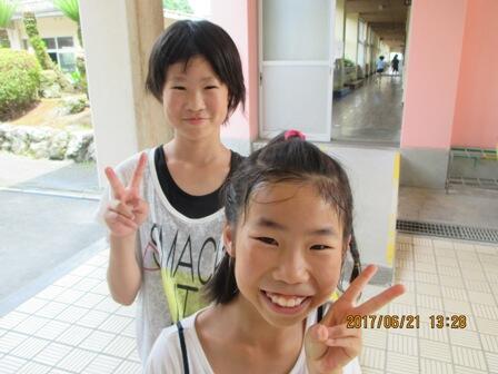 ・ 昼休み時間に、校舎と管理棟の間で運動場を見ていたら、2年生が「かわいいかえるをみつけました。」と、虫かごにいれた小さなかえるを見せてくれました。また、5年生女子も三人で「保健室に行きます。」と、横を通っていきました。