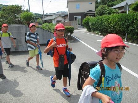 ・ 今日は途中まで教師引率の地区別集団下校でした。子どもたちは、様々な顔をして今、学校を出たところです。