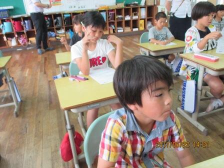 ・ 今、3年生が福祉の学習をしています。講師として社会福祉協議会から来ていただき、手作りの画面も使用してもらいながら指導してもらっています。講師に来て下さっている方は、本校卒業生で校区内に住んでいらっしゃる、子どもたちにとっては先輩です。以前テレビで「ようこそ先輩」という番組がありましたが、まさにそれですね。