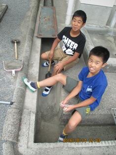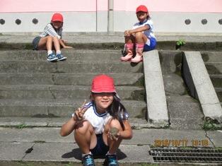 ・ 今日も子供たちは昼休みにいろんな遊びをして楽しんでいました。水たまりやぬかるみの多い運動場では、写真のように「泥団子作り」「泥ホットケーキ作り」をしたり、川作りをしたりして楽しそうに遊んでいました。