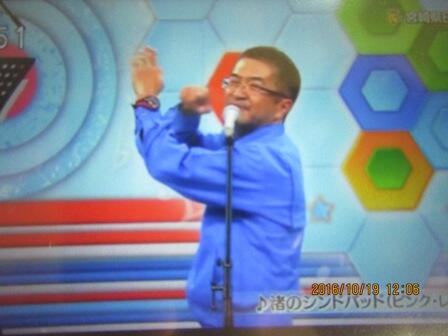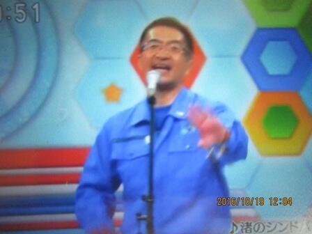 ・ このほど、日南市で行われた「のど自慢大会」に、本校の前PTA会長が出場されていたようです。そして、従兄弟と二人でなんと「渚のシンドバット」を歌われたようです。あいにく、テレビでは見ていなかったのですが、ネットでも出ているとのことを聞いて見て写したのが下の写真です。なるほど・・・元会長のふだんとは違う顔を拝見させていただきました。なお、ペアの方も某学校の元会長さんです。お二人ともお疲れ様でした。(写真はご本人の許可を得ています。)