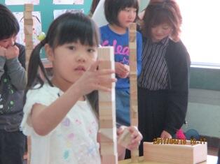 ・ 今日の参観授業では1年生は市教委からいただいた「積み木」を使った活動をしていました。保護者の方と一緒の活動もあり楽しそうでした。