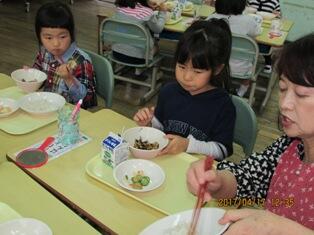 ・ 今日から1年生も給食を食べ始めました。小学校での最初の給食です。メニューは、やや小学生の中にも人気があるとは言えない内容でしたが、「おいしい。」と言いながらいただいていました。2回目となる明日はカレーライスです。
