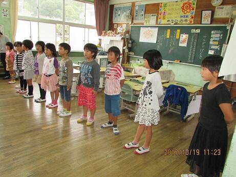 ・ 昨日の下校指導で全校児童が集合した際に、18~20日まで「スクールトライアル」という制度で本校に来ている、本校卒の宮崎某大学の1年生に話をしてもらいました。話の中で、子供たちのことを「元気な声で挨拶ができている子供が多いこと、きらきら輝いている子供が多いこと」と言ってくださいました。あと二日間、いろんな体験をしてもらって、一回り大きくなって大学に帰したいと思っています。